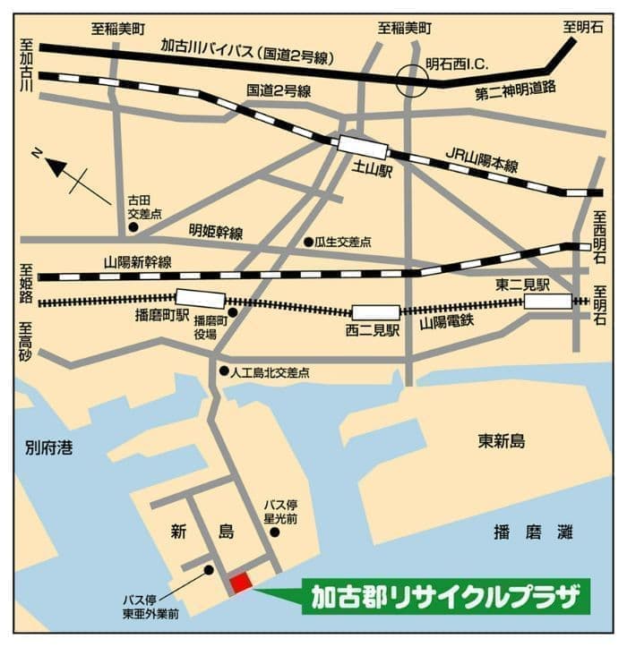 播磨町 加古郡リサイクルプラザ「はりま里彩来館」 〒675-0155 加古郡播磨町新島60番地 TEL:079-437-7671 |