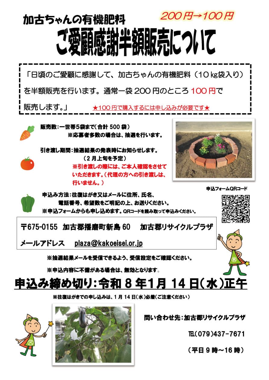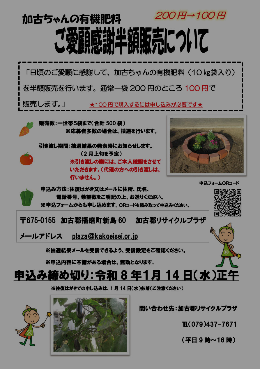 【加古ちゃんの有機肥料】(10㎏ 200円)